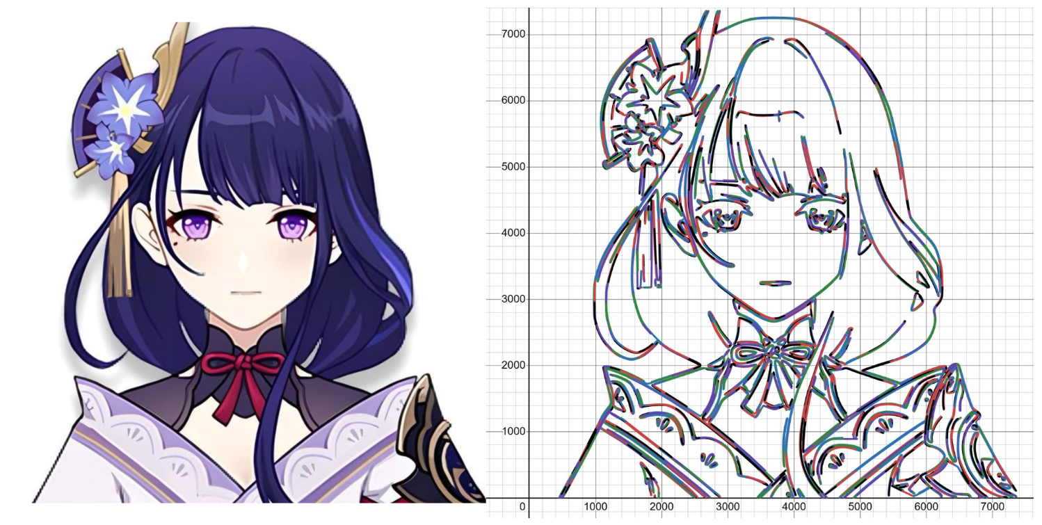 Convert any image into parametric equations that render beautifully in the Desmos graphing calculator. Math meets art.